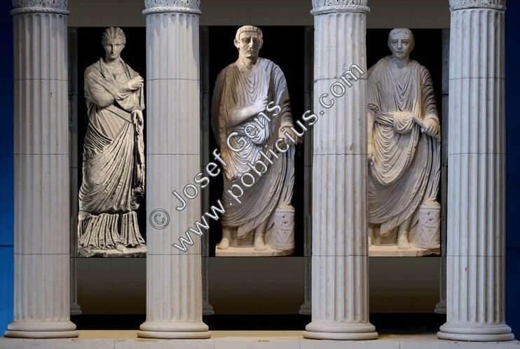 Beim Wiederaufbau des Baukörpers im Römisch-Germanischen Museum wurden drei Nischen im hin-teren Teil der Aedikula für die spätere Aufstellung der Statuen vorgesehen.